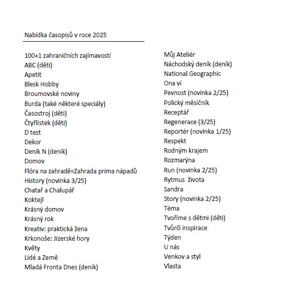 Nabídka časopisů 2025