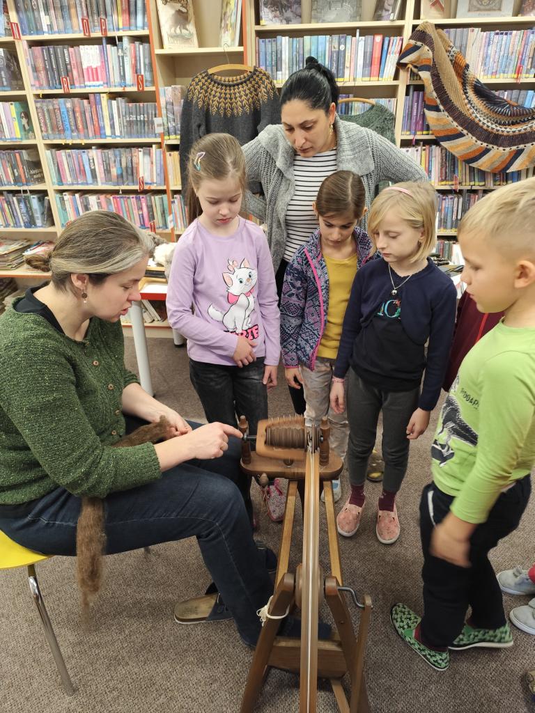 Naše kolegyně Helča dětem předvedla práci s kolovrátkem a popovídala o tom, z jakých zvířátek, a nejen z nich, můžeme získat vlnu. Jak se zpracovává. Povídání bylo velmi zajímavé a děti velice bavilo.