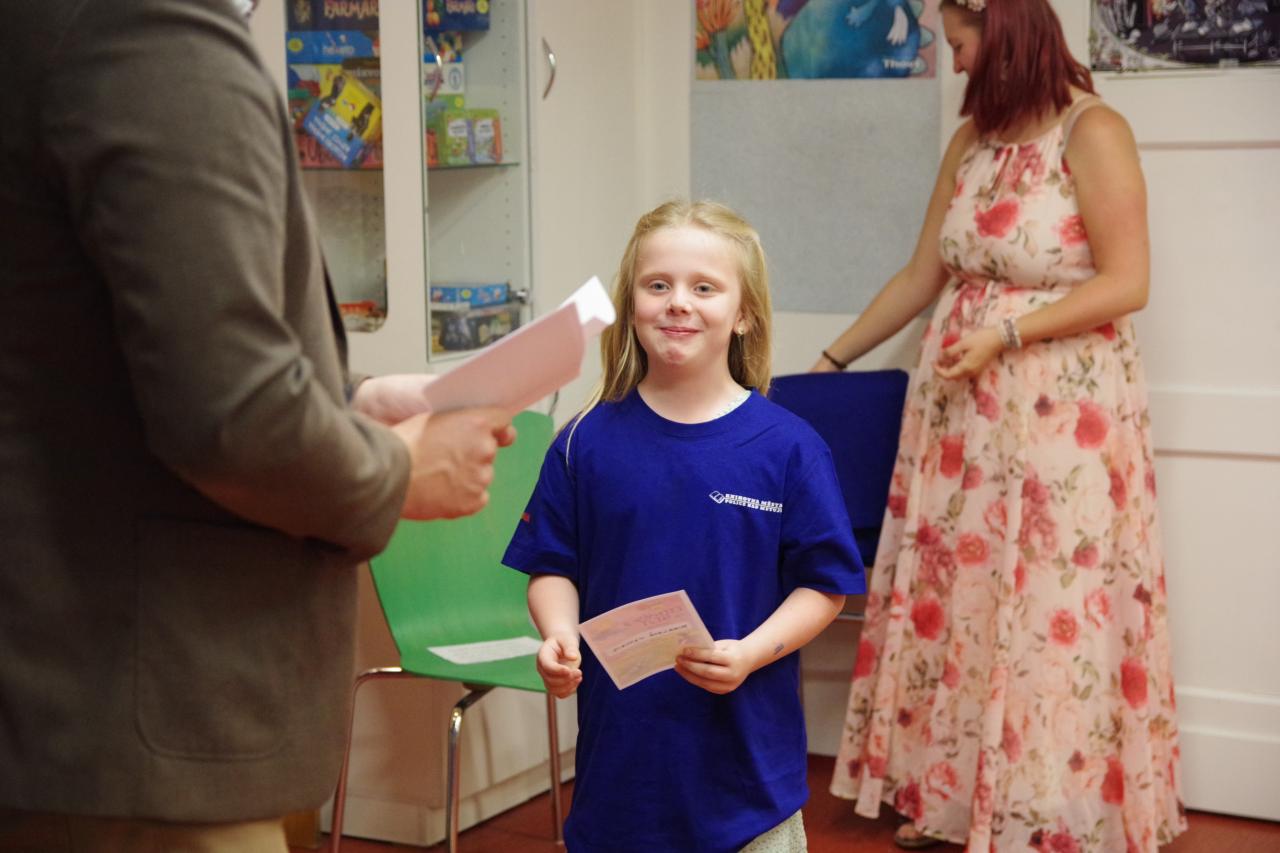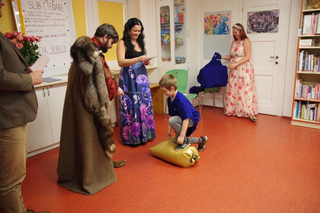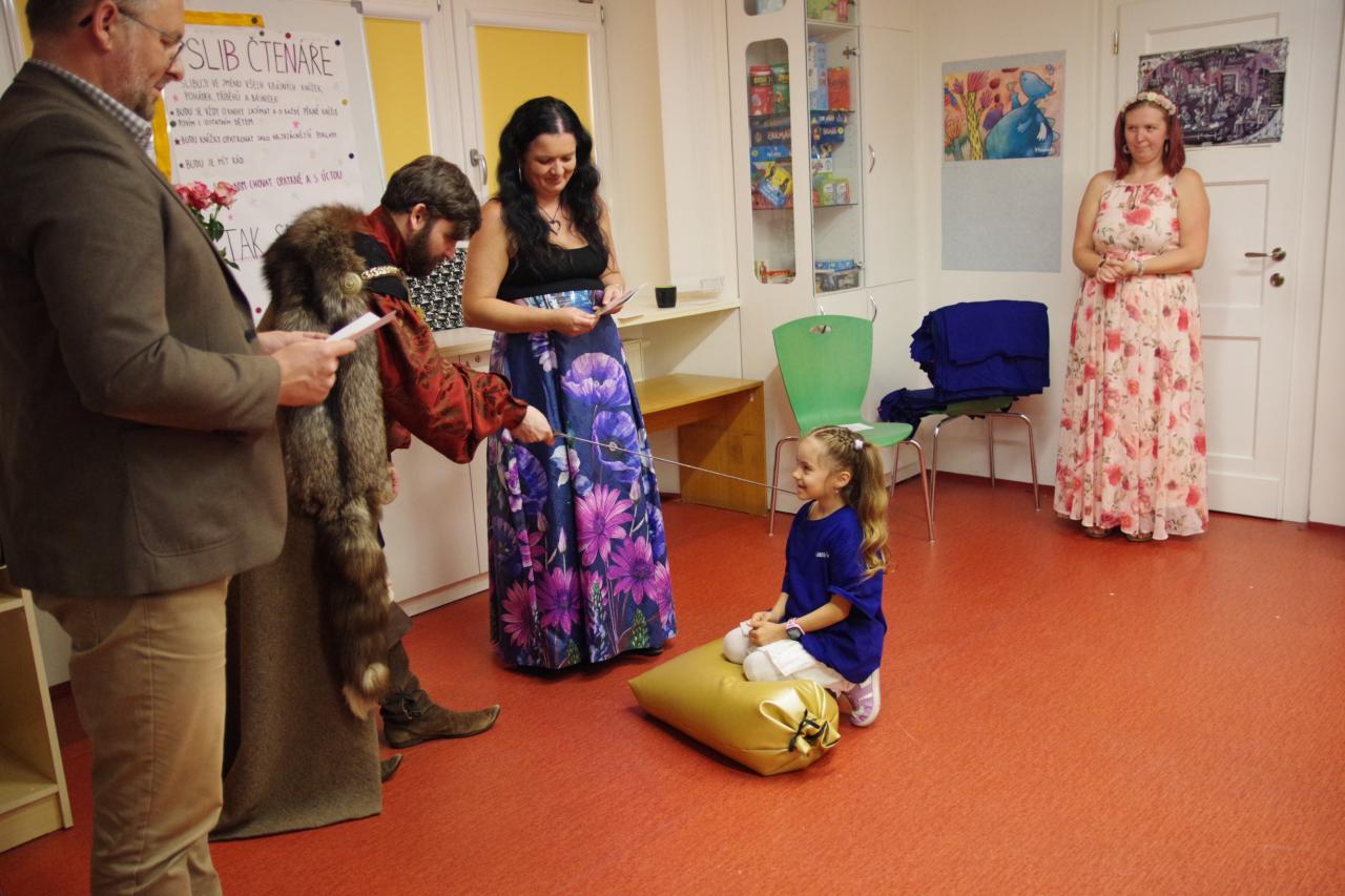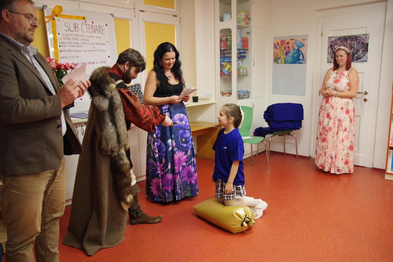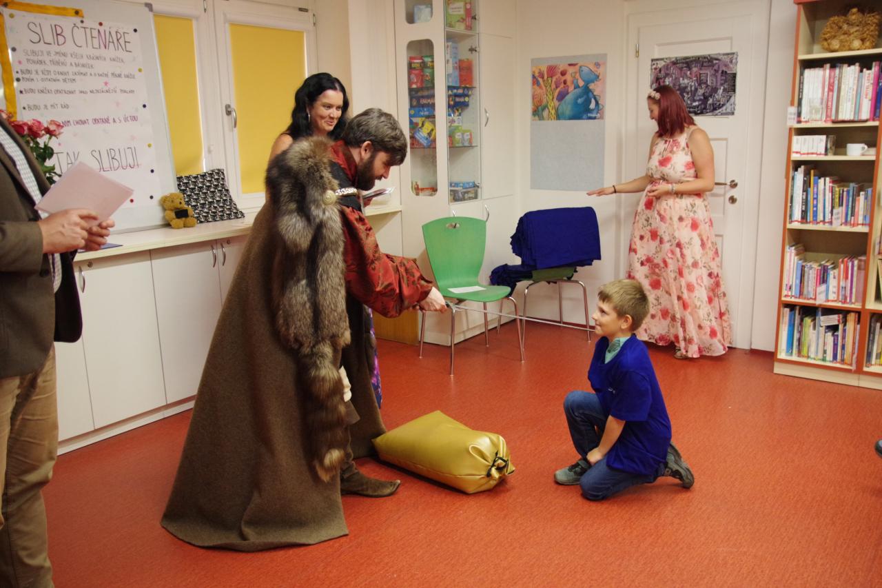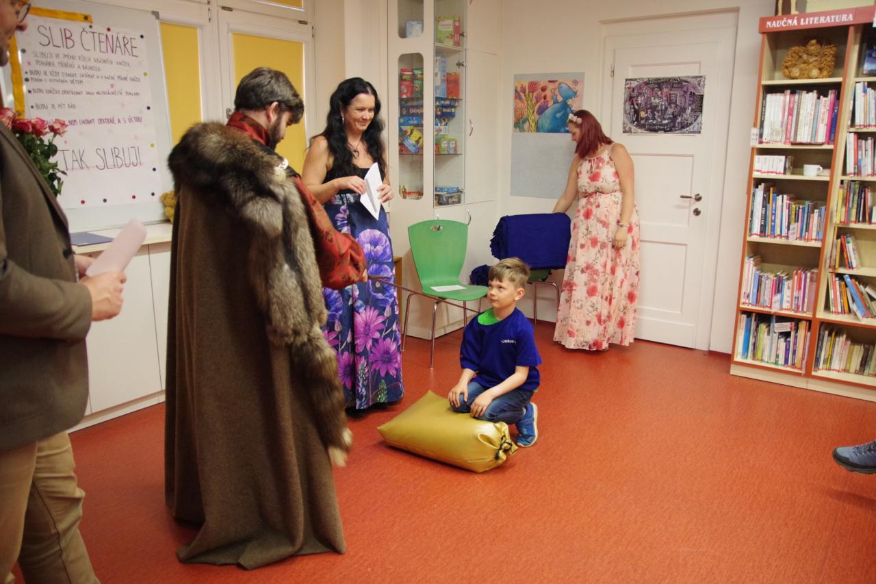 Po krátkém úvodu nám děti přečetly básničky a dokázaly nám tím, že jsou hodny být pasovány. Složily "Čtenářský slib" a poté pan rytíř pasoval 82 dětí. Nechyběly ani dárečky. Čtenářský glejt a poukázka na rok do knihovny zdarma. Děti byly pasovány v kouzelném tričku. Na závěr celé slavnosti děti kouzlily s panem kouzelníkem Mr. CARLO na sále Pellyho domů.